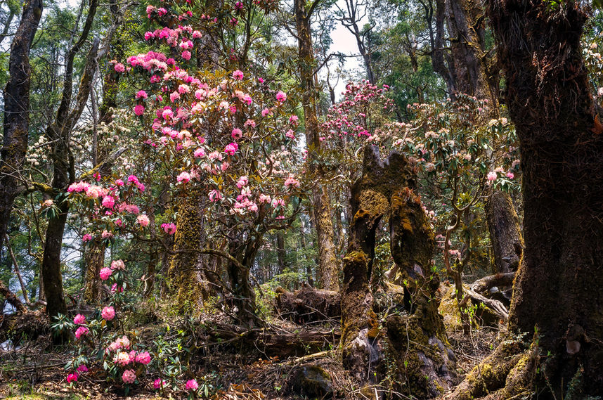 After breakfast, we begin our trek through lush forests to the Chopcha Khola River and to the village of Bamboo where we will spend the night. These ancient, forested regions are home to red panda, wild boar, black-faced langur monkeys and Himalayan Black Bear. After crossing the Chopcha Khola River on a suspension bridge festooned with prayer flags, we continue until Bamboo and our lodging for the night. Overnight in Bamboo (6,512 ft.).